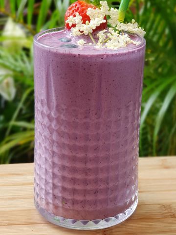 Creamy, thick blend of milk, mixed berries, honey & ice cream